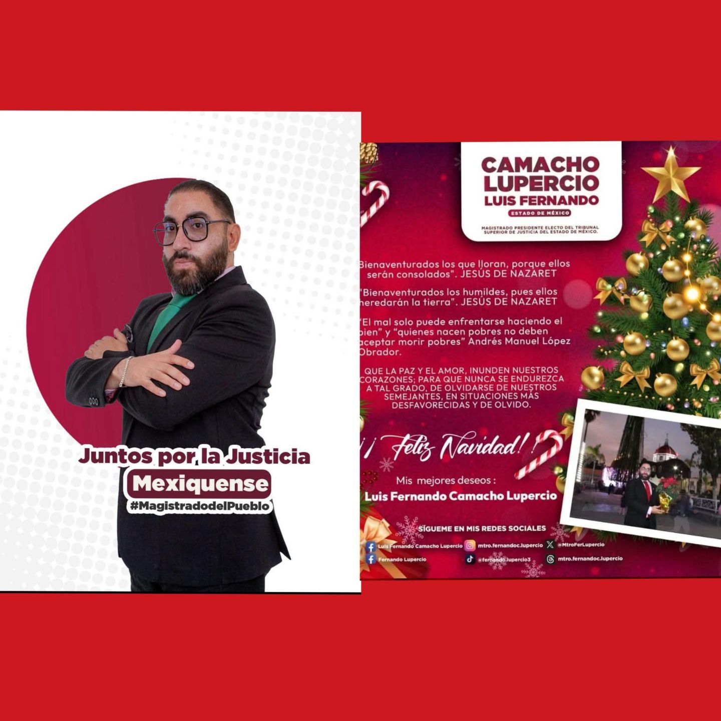 Un cordial y respetuoso mensaje de temporada. El Magistrado Luis Fernando Camacho Lupercio, del Poder Judicial del Estado de México, extiende sus sinceros deseos de Feliz Navidad al pueblo mexiquense, a todas las familias y al soberano pueblo de México.