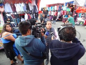 *Cerca de veinte guaruras cuidaron a la nueva alcaldesa tratando de evitar que comunicadores y gente del pueblo se le acercaran. *Nancy Gómez dio conferencia de banqueta ante la falta de un coordinador de prensa.