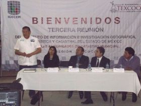 *María Guadalupe Díaz Arista, acompañada por Javier Hernández Livera de la Dirección de catastro municipal, dieron la bienvenida a los asistentes, señalando la importancia que para Texcoco ha tenido la actualización catastral,