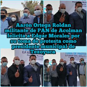 Felicito a Edgar Morales por su toma de protesta como presidente municipal de Tezoyuca,su amigo Aarón Ortega, le desea lo mejor en su período 2022-2024.
